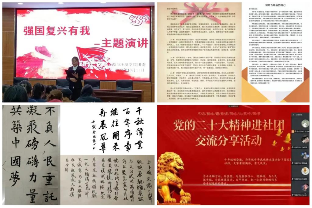 为进一步丰富学习内涵,开展了形式多样的学生第二课堂活动。“写给五年后的自己”征集活动,将五年后的自己与新时代东农人的理想目标紧密结合,活动共收到信件、图片200余份;“我们这十年”网络文化作品征集活动中用图片、海报、摄影、短视频等形式聚焦十年来我国发生的历史性成就与变革,展示在新时代新征程中踔厉奋发的精神面貌;举办“党的二十大精神进社团”研讨会,各社团分享学习成果,“学习党的二十大精神”主题网络平台答题完成率为100%;在“青春逢盛世,奋斗正当时”演讲比赛、“聚青年力量,书锦绣华章”主题征文活动中,同学们纷纷从国家发展、青年事迹、乡村振兴、生态保护等多方面入手,重温党的光辉历程,歌颂党的伟大成就,引导广大青年学生抒发爱国之情、砥砺强国之志、实践报国之行。
