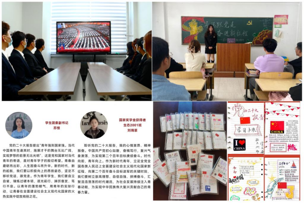 学院团委组织广大团员收听收看党的二十大开幕会盛况,会后第一时间聚焦报告原文组织开展热议,激发团员青年的学习积极性。通过全面系统学、深入思考学、联系实际学,推动学习贯彻党的二十大精神走深走实,依托“三会两制一课”,结合“线上+线下”的学习方式,开展政治理论学习、主题团日、支部专题学习、组织生活会等,完成73个团支部的“永远跟党走,奋进新征程”主题学习宣讲,在新生团支部中开展“青春献礼二十大,强国有我新征程”主题系列团课,同步录入“智慧团建”系统,实现组织化学习全覆盖;“青年大学习”本科生完成率均为100%,位全校前列;开展“人民日报”党的二十大报告学习手账手抄活动,同学们认真撰写,用心制作,一笔一画间描绘出对党的热爱和崇高敬意,进一步加深对党的二十大精神内涵的理解。