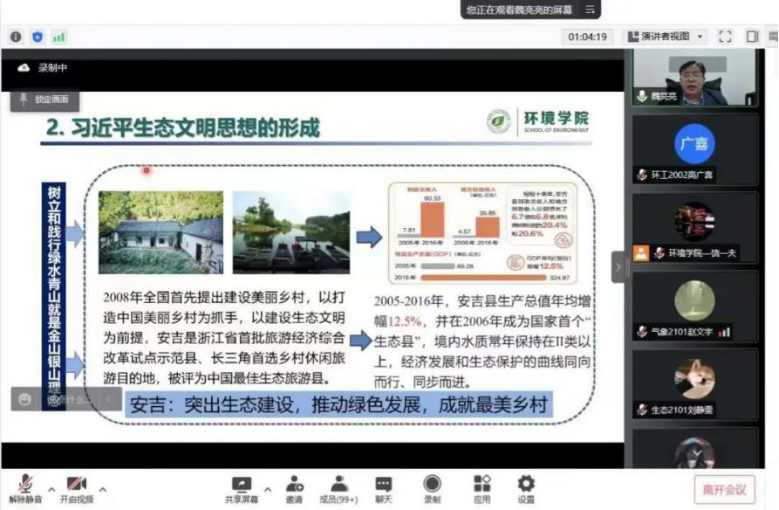为深入宣传贯彻党的十九届六中全会精神、习近平生态文明思想,号召广大同学积极投身生态文明建设,增强生态环境保护意识,3月24日至4月20日,Betway体育西汉姆联学生党支部与哈尔滨工业大学环境学院研究生党支部联合开展了4期以“共建清洁美丽世界”为主题的共建活动。Betway体育西汉姆联环境科学系党支部书记曲建华副教授、哈尔滨工业大学环境学院生态系李昂教授、环境工程系党支部书记魏亮亮教授及优秀学生代表分别通过主题党课、专业分享、经验交流等形式进行了交流学习,两学院学生党员通过腾讯会议参与。