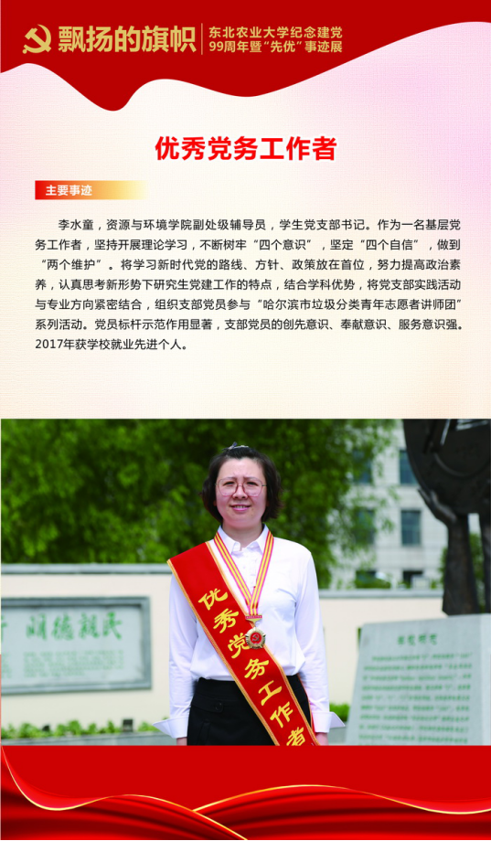 初心凝聚力量,使命催人奋进,旗帜指引方向,奋斗成就辉煌。为了进一步讲好东农榜样故事,传播东农好声音,宣传部特开设“betway中国西汉姆联纪念建党99周年暨‘先优’事迹专题图文展”,与全校师生一起感受榜样的力量,凝聚起更加强大的精神动力,听党话、跟党走,为东农发展建功立业,再创佳绩!
