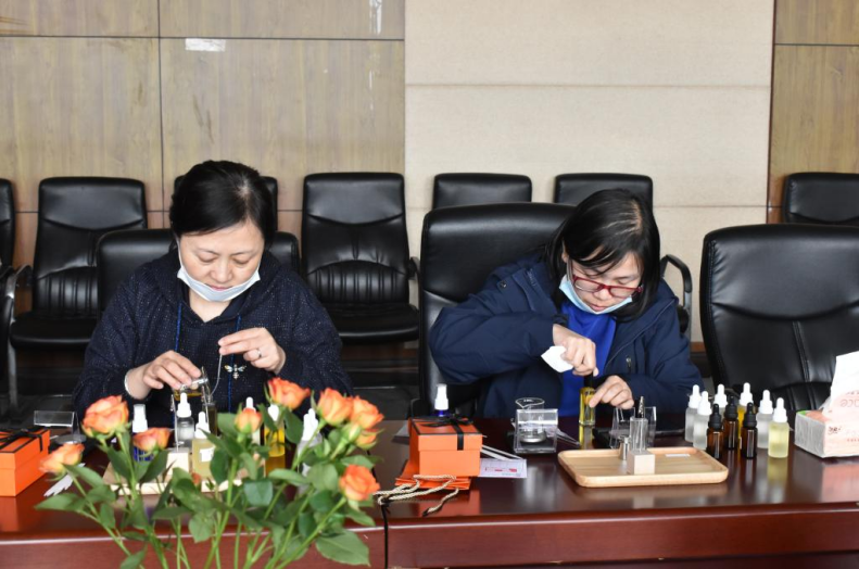 本次活动邀请到了国际芳疗师向学院女教工讲解了调香技巧与护肤知识,从认识香料、闻香调频、精油介绍、调香常识几方面进行全面细致的讲解,结合案例分享与亲身体验,并指导大家动手调香,根据不同的性格、气质、喜好,为每一位女教工调制了一款专属香水。参加活动女教职工积极参与,会场生动有趣、气氛活跃。