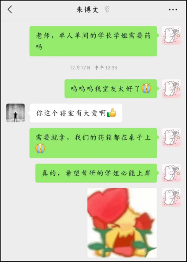 原寝室学生与健康监测学生和辅导员的温暖对话