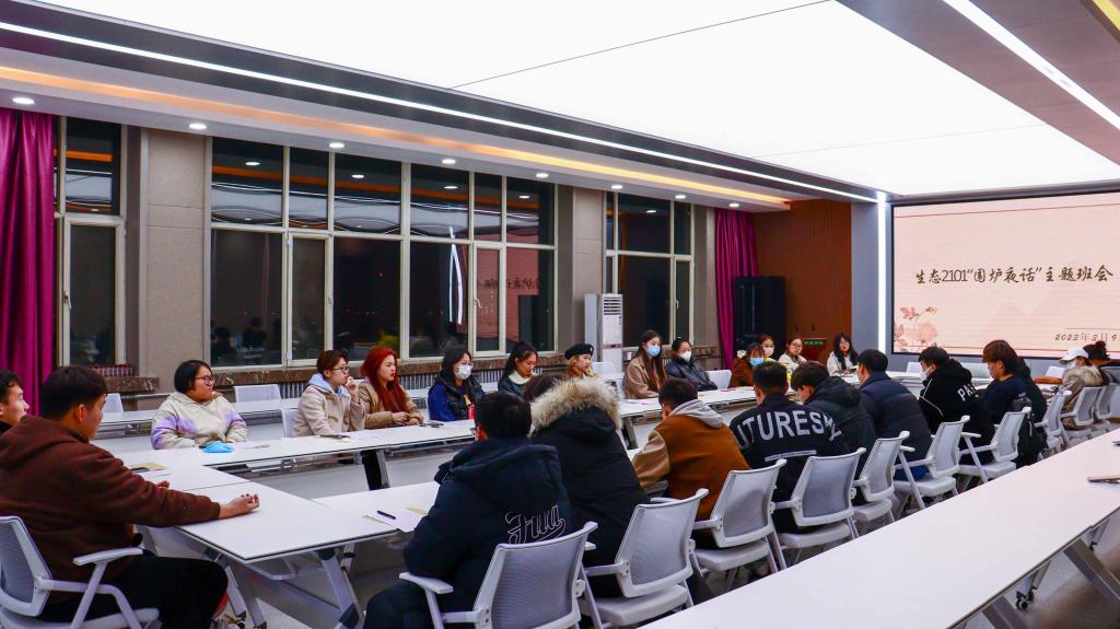 此次班会以“围炉夜话”为主题,抛去了以往的庄重与肃穆,老师与同学们彼此展开心扉,回忆着近一年半的大学生活时光,送走往日的疲惫与烦闷,互相围坐,亲切交谈,一起感悟着对生活、对未来的透视。