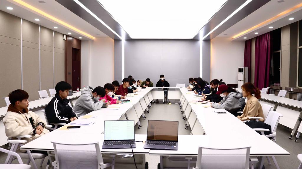 在此次温馨又独特的班会上,王昊老师深入座谈到每个班级中,和同学们一起交流,氛围轻松愉快。各个班级的负责人对过去一年多的班级建设情况进行汇报,班级同学们围着方桌,依次讨论着同学之间的情谊、寝室生活的点滴、学习方面的问题等,有对过去的怀念,也有对未来的希冀。在沟通与交流间,同学们更加深了对彼此之间的了解。