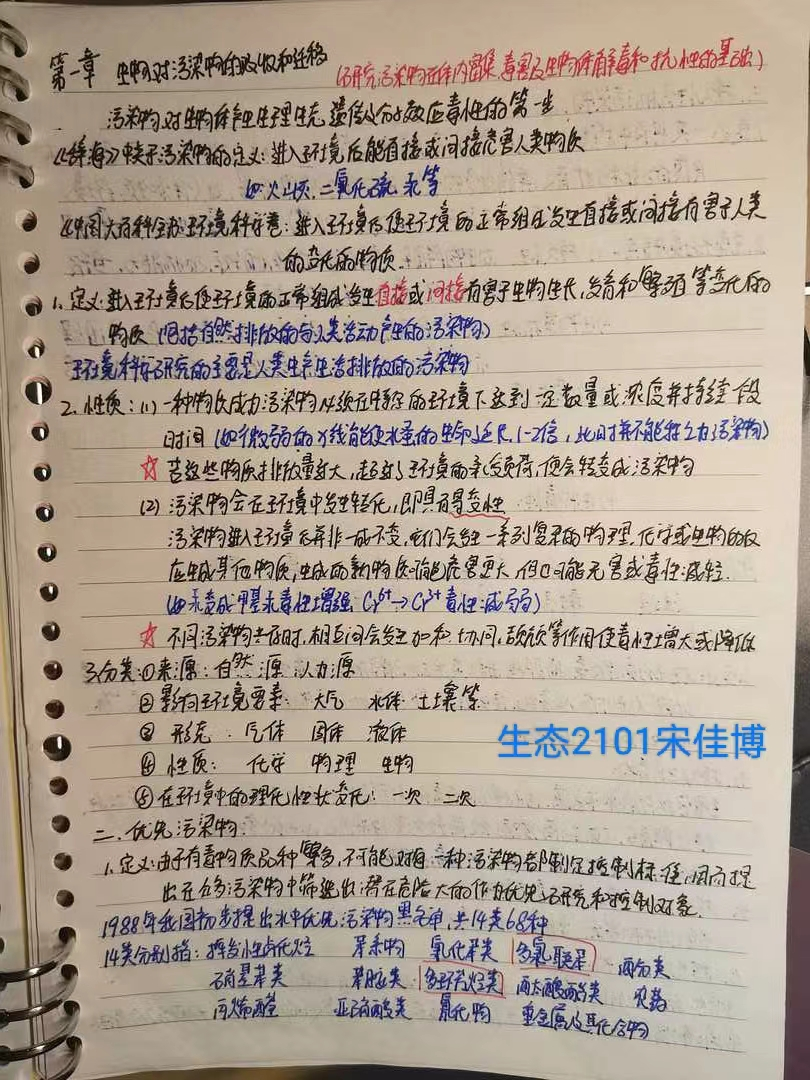 用笔记引领学习。3月12日第二期《污染生态学》线上学习笔记展示评选活动获得圆满成功!生态专业三年级本科生通过生生互评、教师评价相结合的方式,根据内容、形式、特色等综合评价,在所有同学的积极参与下,最终评选出优秀学习笔记16份,其中,李凌越、范睿成和周敬全三名同学的笔记以图文并茂、知识点直观性强、勤于思考获得前三名,程时同学的笔记应用最新技术,绘制详细的知识图谱,刘欣雨同学的多彩笔记、李浩铭同学的笔记字透纸背、知识点详实等等获得同学的一致认可。课堂上部分同学进行了学习笔记的心得分享,不仅锻炼了学生的分析、归纳能力,也助力同学学习方法的改进,突然的认可让同学窃喜不已,激发学习兴趣的同时展示自我的热情不断提高。
