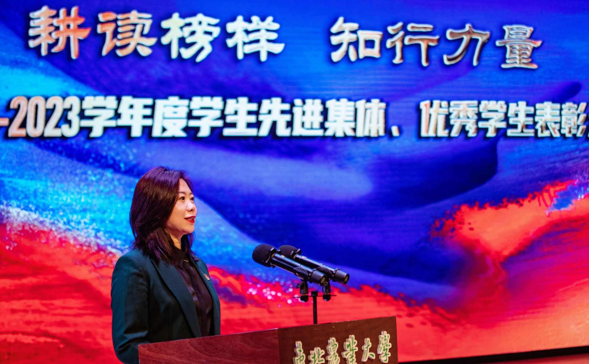 本次大会对2022-2023学年度在专业学习、社会工作、科技创新、社会实践等方面表现突出的先进集体和个人进行了表彰,与会领导分别宣读了《关于颁发2022—2023学年度本科生国家奖学金、国家励志奖学金的决定》《关于颁发2023年研究生国家奖学金的决定》《关于表彰2023年黑龙江省普通高等学校“三好学生”的决定》《关于颁发2022—2023学年度本科生单项奖学金的决定》《关于表彰2022—2023学年度本科生先进班集体、大学生年度人物(群体)的决定》《关于表彰2022-2023学年度星级文明寝室的决定》《关于表彰2022-2023学年度研究生先进班集体、优秀研究生、优秀研究生干部》等奖励决定,并为获奖集体和个人颁奖。