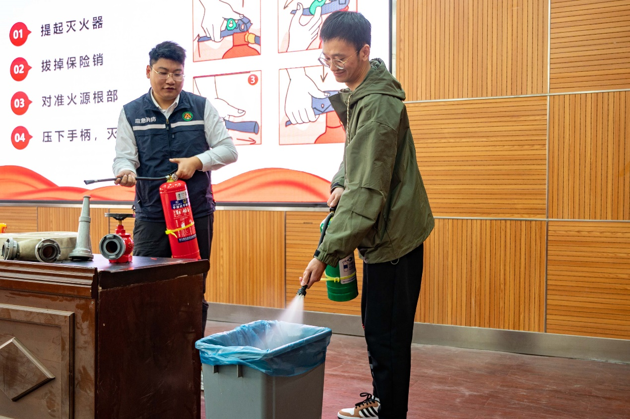 当天上午,由保卫处防火科刘浩东主讲的“预防为主生命至上——消防安全教育讲座”引起学院师生共鸣,刘老师通过生动形象的案例,为在场师生进行了消防安全隐患点讲解、防火器材实操讲解,同时强调各实验室要加大隐患排查自查力度,坚持每日巡查,尤其加大对重点部位巡查力度,做到防患于未然,科学防火。