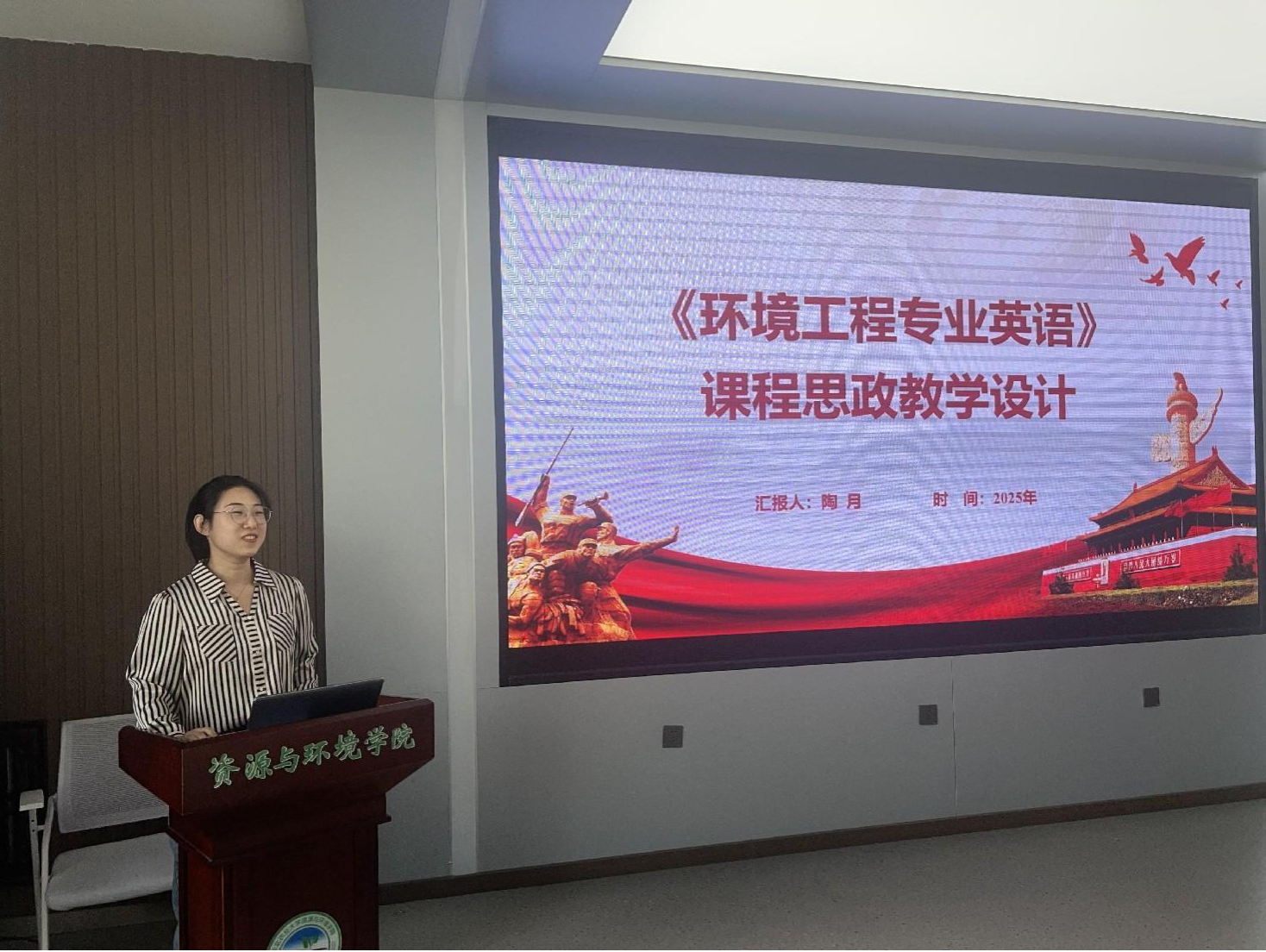 陶月作了题为《<环境工程专业英语>课程思政教学设计》的专题报告。以“专业知识+思政引领”双目标教学框架,整合“双碳战略”,形成“线上+线下”混合教学模式,通过跨学科团队协同,模拟国际会议等实践,提升学生专业能力与家国情怀。该课程教学模式为专业英语课程的教学改革提供过了参考依据,在学院内形成示范效应,极大地带动专业英语类课程的思政建设。