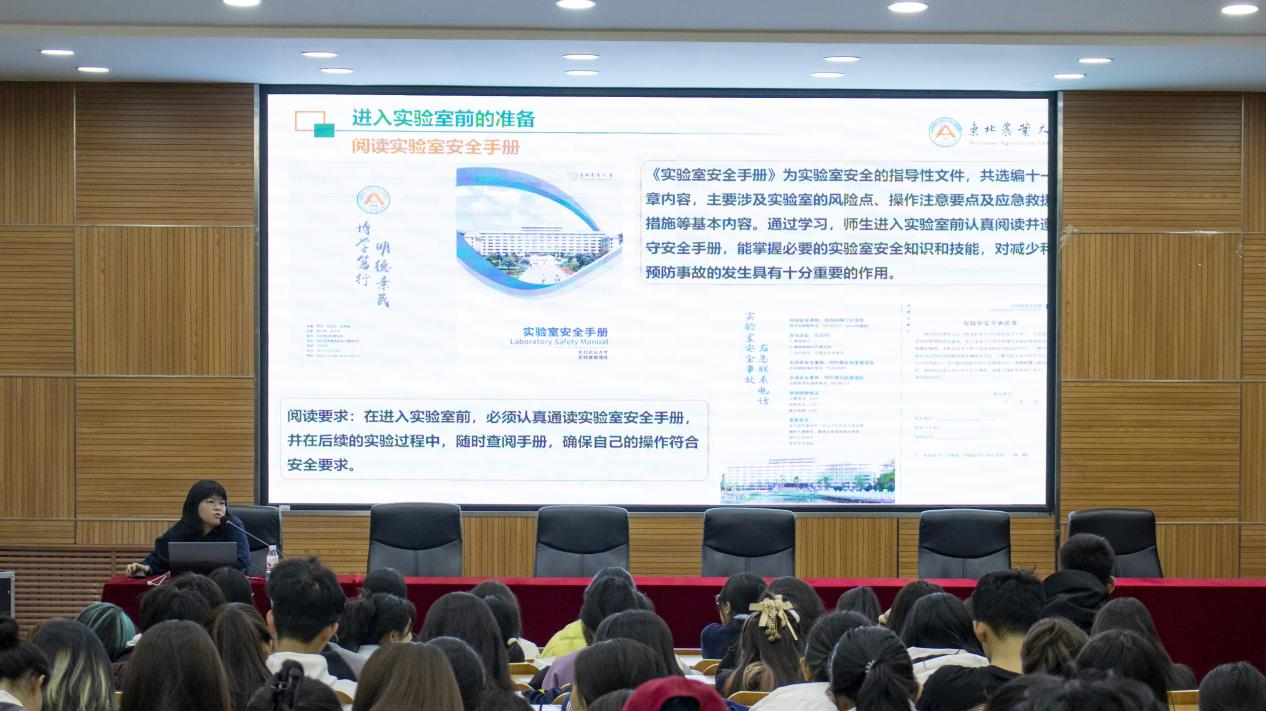 为深入贯彻落实“安全第一、预防为主”方针,增强2025级新生的实验室安全意识,帮助大家掌握实验室安全知识,营造安全、和谐的实验环境,学院开展了本年度实验室安全文化月系列安全活动,包括实验室安全检查、实验室安全知识展板展览、安全准入知识培训及考核等。10月29日,学院特别邀请实验室管理处技术安全科的李欣老师和石佳卉老师,为全体2025级新生带来了一场精彩且实用的实验室安全讲座。培训由学院安全主管赵佳英老师主持。