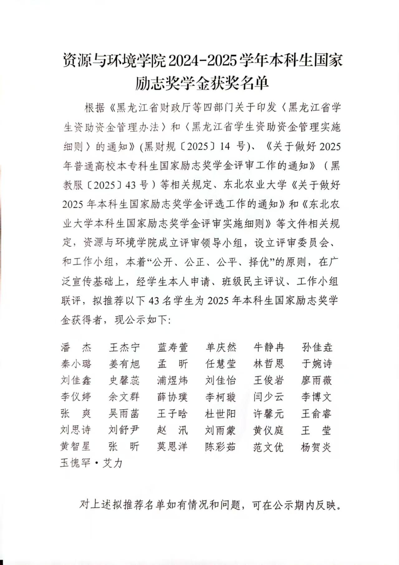 Betway体育西汉姆联2024-2025学年本科生国家励志奖学金获奖名单公示