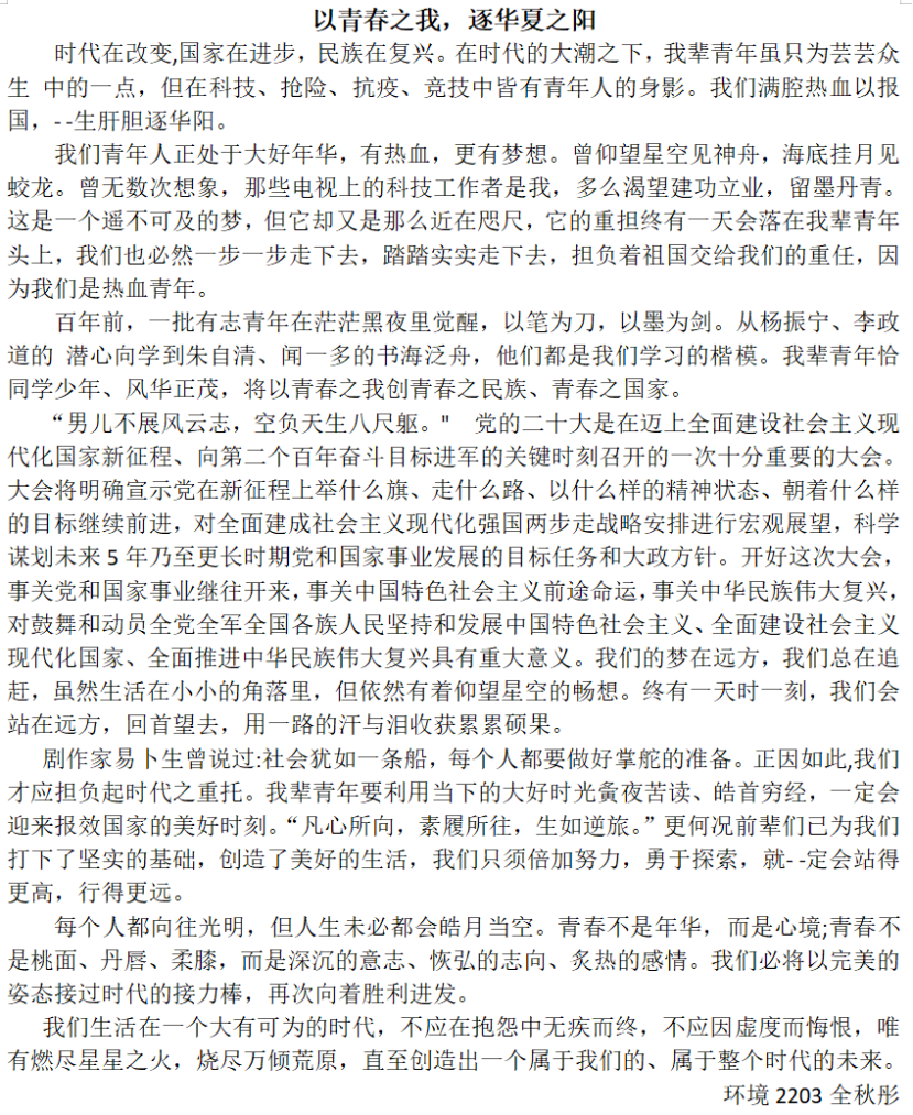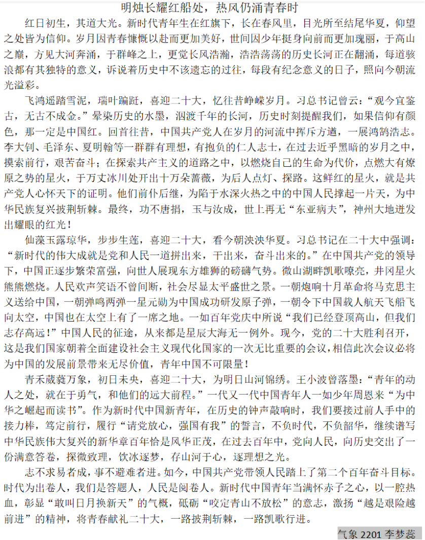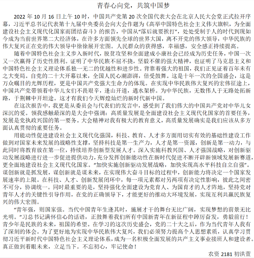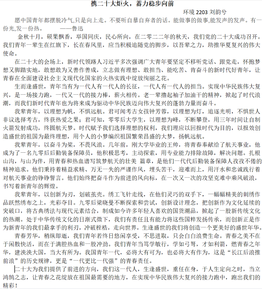 【资环易班】“学习二十大,永远跟党走,奋进新征程”—主题征文活动展示