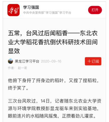 科技小院围绕五常水稻生产上优质稻品种倒伏严重、易早衰、香气退化,影响稻米品质的核心问题,“校院地”三方在哈尔滨市农业科学院以及五常市两个基地同时开展攻关,选派研究生长期驻扎基地,调研走访农户,深入田间地头,了解当地水稻生产的实际问题,通过优化密度、水肥管理和应用化控措施,同时结合叶面喷施氨基酸、镁肥、富硒、富锌等补充中微量元素技术,集成科学施肥、合理密植、科学灌溉和绿色植保技术,构建水稻绿色高产栽培技术规程,为稻花香配套水稻专用套餐肥;同时,为哈粳稻系列品种提供了水肥管理配套方案,基本解决了哈粳稻系列品种倒伏问题。