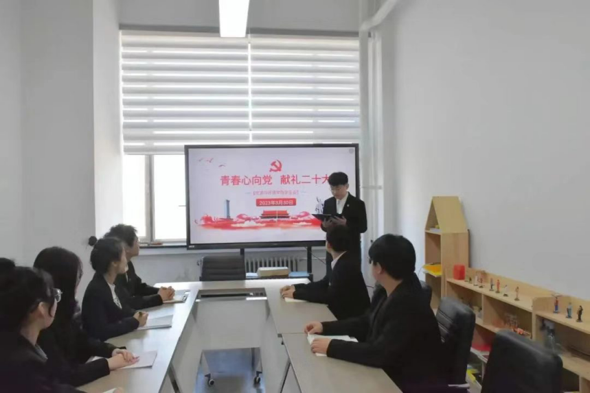 学生会监察调研部部长郝春悦在会议上说到:当青春遇上党的二十大,中国青年奋进之姿态耀眼于整个历史长河:中国青年前赴后继、冲锋陷阵;中国青年自力更生、艰苦创业;中国青年勇立潮头、锐意创新;而今迈向新时代,中国青年不忘初心、牢记使命。正是一代又一代的中国青年以青春之奋进追求民族独立和人民解放,追求国家富强和民族振兴,中国共产党才能欣欣向荣,永葆生机。新时代的中国青年,当毅然决然扛起大梁,勇于攀登、砥砺前行,在经风雨、见世面中长才干、壮筋骨,练就铁脊梁、真本事,以金刚不坏之身应对一切艰难险阻,以奋楫勇毅之姿抵挡一切惊涛骇浪。