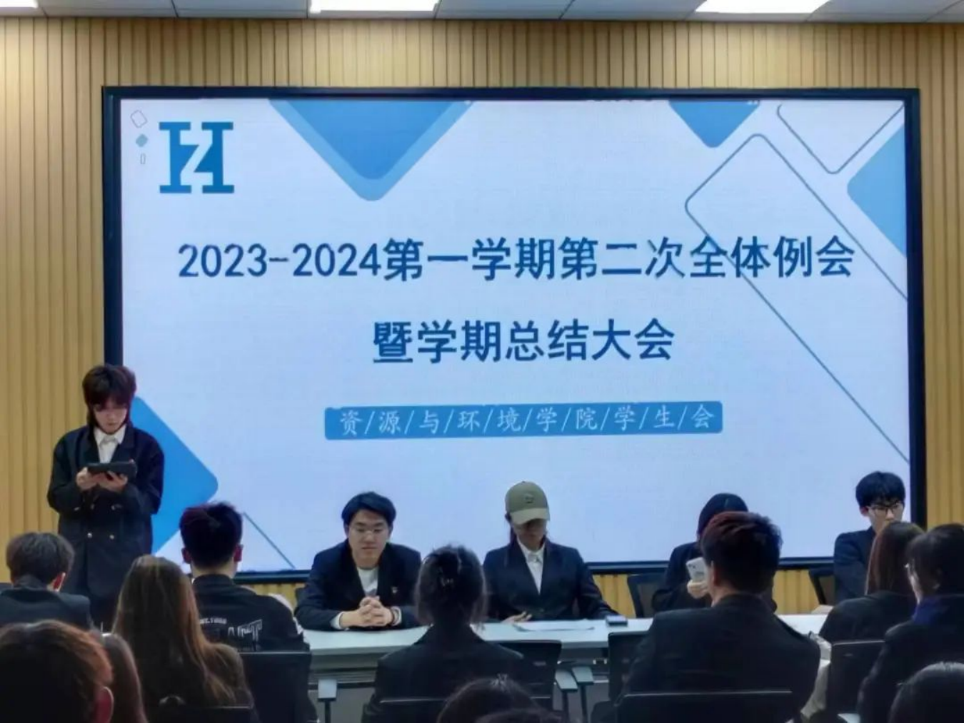 刘爽主席在例会中说:随着学期之声的渐远,我们学生会已经完成了本学期的工作。在此我们对本学期的工作进行如下总结。首先,我们成功的组织了多项活动,这些活动得到了广大师生的热烈响应和积极参与,不仅丰富了同学们的课余生活,也促进了同学们之间的交流和友谊。然而在工作的过程中,我们也有不足之处,一些推送的制作模板选择的不恰当,照片的拍摄等方面都还有进步的空间。