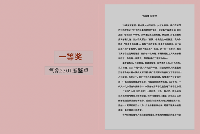 蘸笔天河书万古生香,御笔滔滔绘烟霞绣像。为纪念建国74周年,资环学院举办了“喜迎华诞,筑梦华夏”征文比赛,“青春向未来,国庆颂党恩”朗诵和观影宣誓联合活动。青年立身江山激昂,摹尽七十四载煌煌辉光。