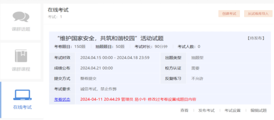 2、活动过程中应动态关注学生参与活动态度是否端正,参评是否符合时限要求,有无作弊行为等。