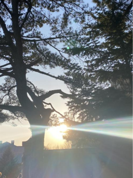 忽有一夜,一声巨响与一道弧光唤醒了它。此刻,风轻柔,雨绵绵。它便轻拭绿叶上的瘢痕,扎深根,舒长叶,丝丝落雨化作晶莹露珠。间有行人撑伞漫步时,理想的绿叶与耀眼的露珠无不向他们诉说春天的盛大开场。这是理想,是隆冬过后盛春的序曲,是剧目的开场白。它铺就的是人生之春的红毯,走到尽头,轻推门扉,在“吱呀”一声后,旭光穿过,理想又化身在满眼的绿色中,引出春山顶峰的幽径……