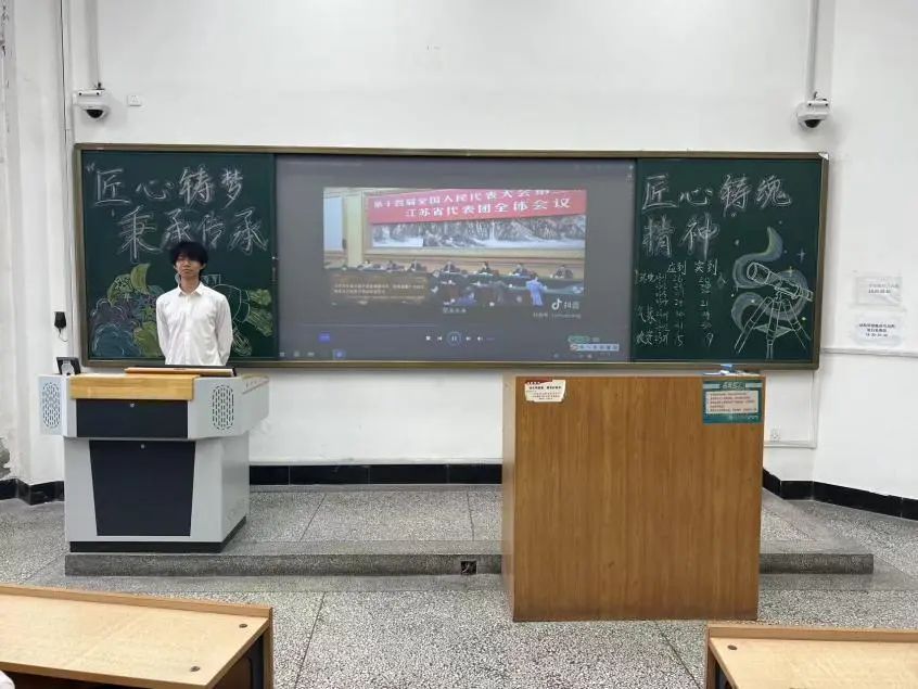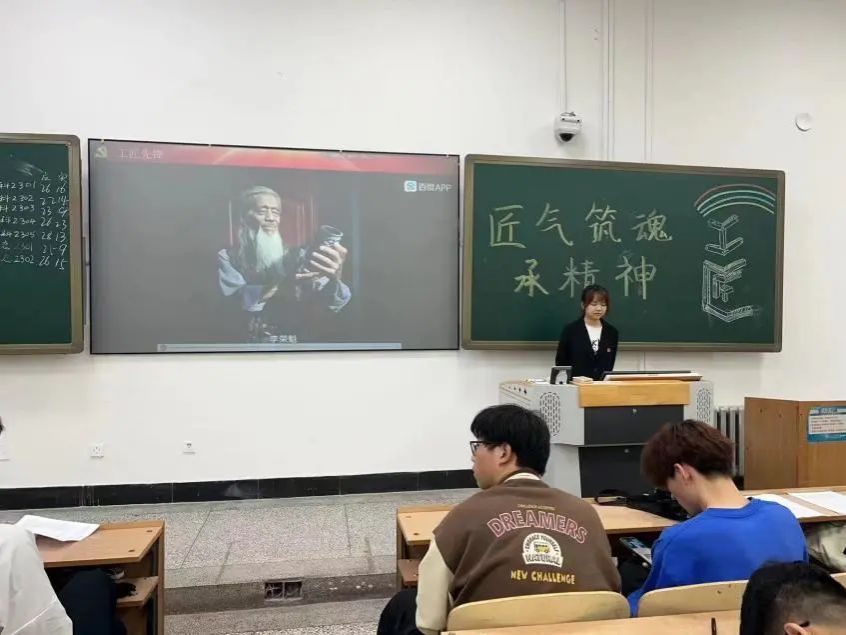 环境、气象的主持人使用通俗易懂的语向同学们传达“‘匠心筑梦,匠气筑魂’秉承传承精神”理念的重要性,以视频的的方式让同学们体验充分认识到劳动的重要性。适应当今世界科技革命和产业变革的需要,勤学苦练、深入钻研,勇于创新、敢为人先,不断提高技术技能水平,为推动高质量发展、实施制造强国战略、全面建设社会主义现代化国家贡献智慧和力量。激发团队成员的敬业精神和创新意识,同时弘扬传统文化。