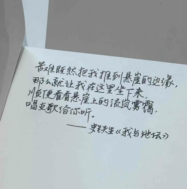 后来我低着头向上看遇见了三毛,遇见了屹立在她心中的那棵沉默而又骄傲的树;我遇见了杨绛,遇见了她沉静外表下深埋的那簇永远炽热的生命之火。我走近了毕淑敏,在她至纯至美的冰雪世界中望向幽蓝幻化的天际,静听生命的哲理。我的世界,慢慢变得不再只有黑白,变得更加斑斓多彩。