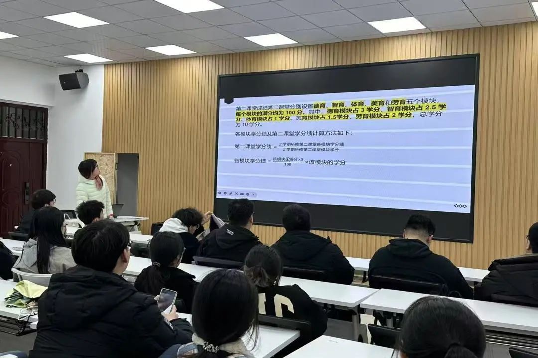 班长与团支书作为主讲,依据学生会学业发展部精心筹备的综评讲解材料,深入浅出地向同学们阐释综评计算方法、学分认定准则。他们结合过往班级综评计算的实例,指出了材料审核不细致、计算失误等常见问题。针对这些,给出规范材料格式、双人复核等解决措施。同学们全程专注,积极回应,还主动分享看法,承诺会全力协助班委,严谨细致地完成综评计算任务。