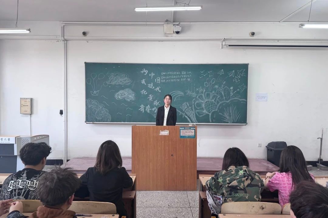 农科班级的主持人通过播放一段关于中国农业现代化发展历程的视频,从传统农耕到机械化作业,再到如今智慧农业的兴起,直观展现了农业领域的巨大变革,引出中国式现代化中农业现代化的重要地位。团支书指出,农业现代化是中国式现代化的根基,保障粮食安全、提升农业质量效益、促进乡村全面振兴,都离不开农科青年的努力。“把饭碗牢牢端在自己手上”,这不仅是国家战略,更是农科人义不容辞的责任 。在理论学习环节,团支书详细解读了中国式现代化的内涵、特征以及对农业发展的具体要求,结合党的政策文件,如中央一号文件中关于农业科技创新、农村产业融合等内容,深入分析农科专业学生在新时代的使命。同学们认真聆听,不时记录重点,对农业现代化有了更深刻的理解。