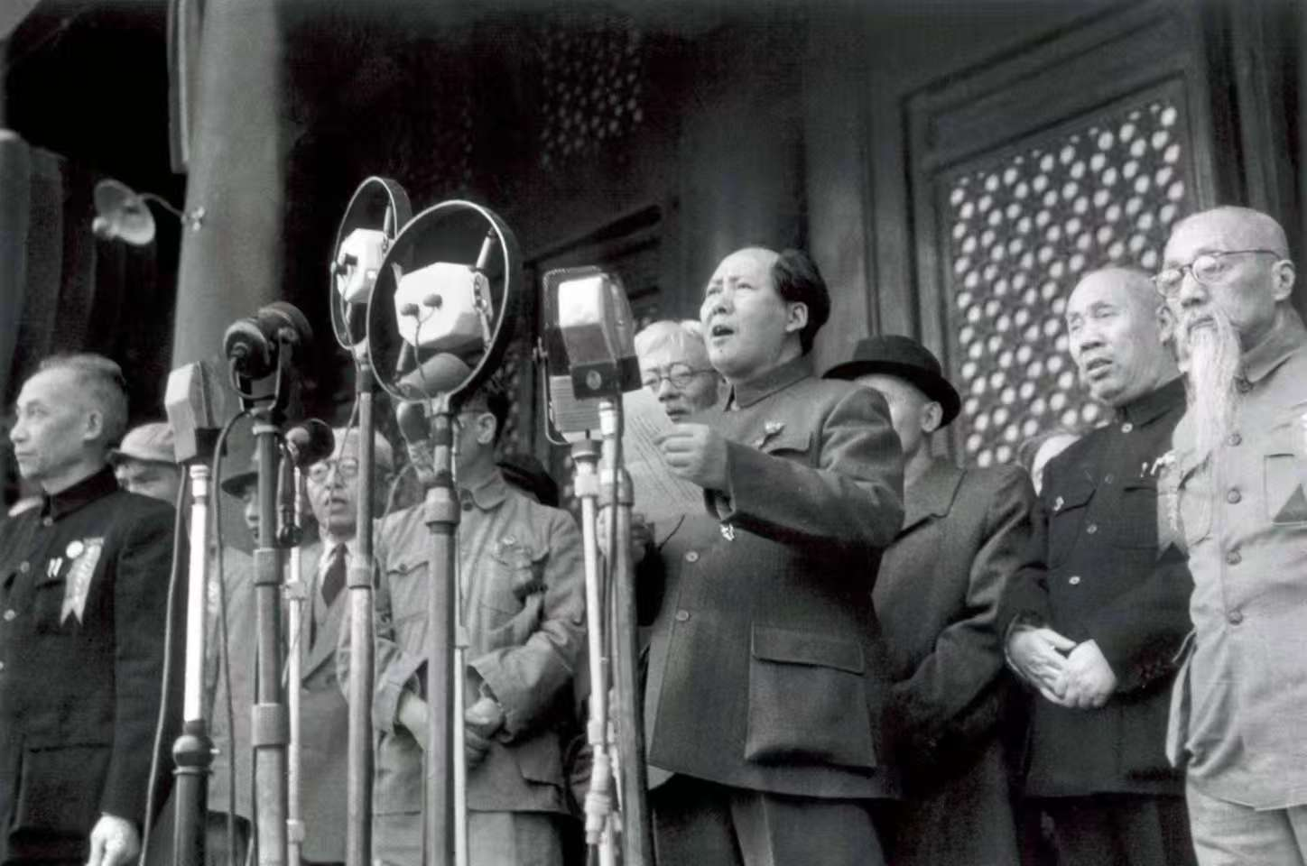 1949年10月1日,中华人民共和国中央人民政府成立典礼,即开国大典,在北京天安门广场隆重举行,毛泽东主席以洪亮声音向全世界宣告“中华人民共和国中央人民政府今天成立了”,五星红旗伴随28响礼炮升起,标志着中华人民共和国诞生了!中国的历史从此翻开了崭新的篇章。