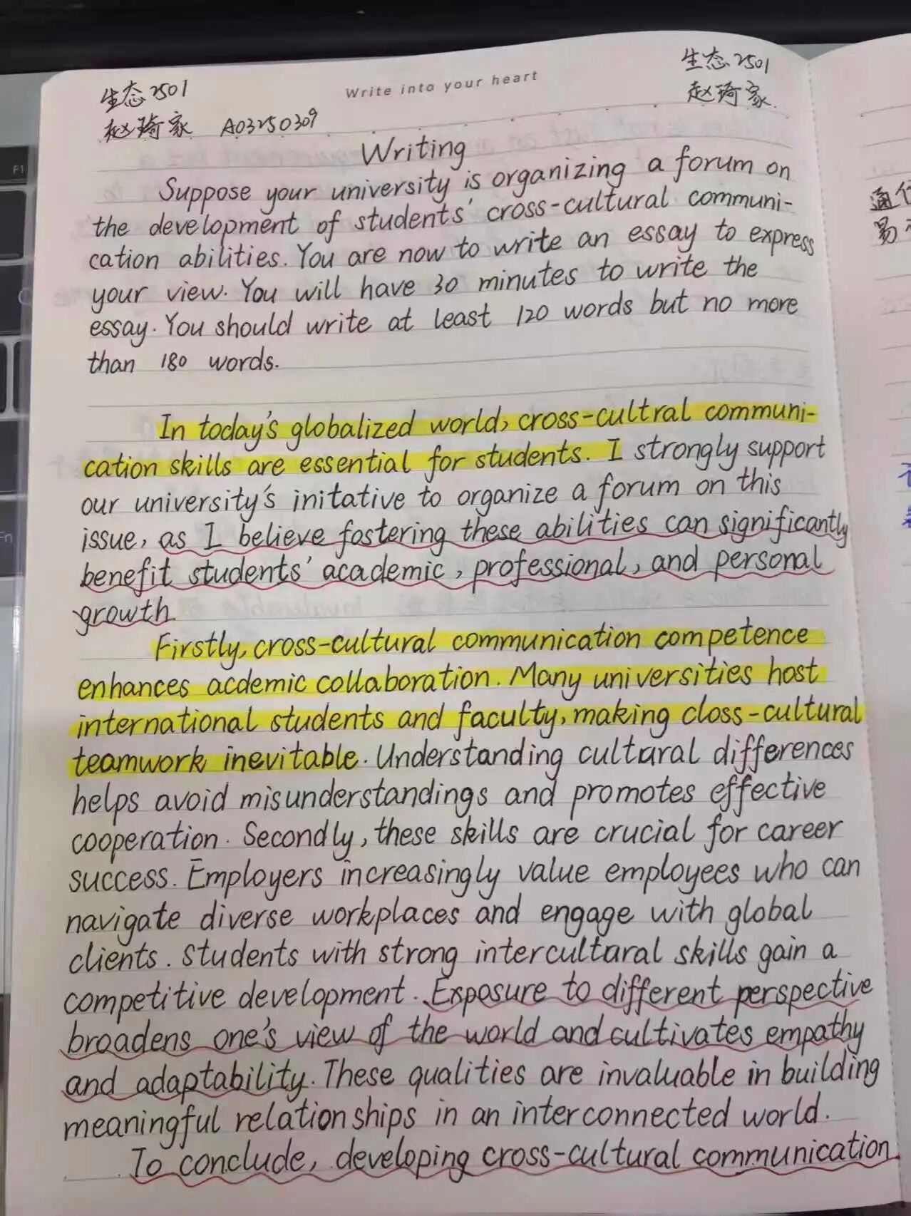 此次写作活动中,大家精心书写、积极参与,上传了几十份优秀作品。感谢各位同学的参与,经过筛选,获奖名单如下: