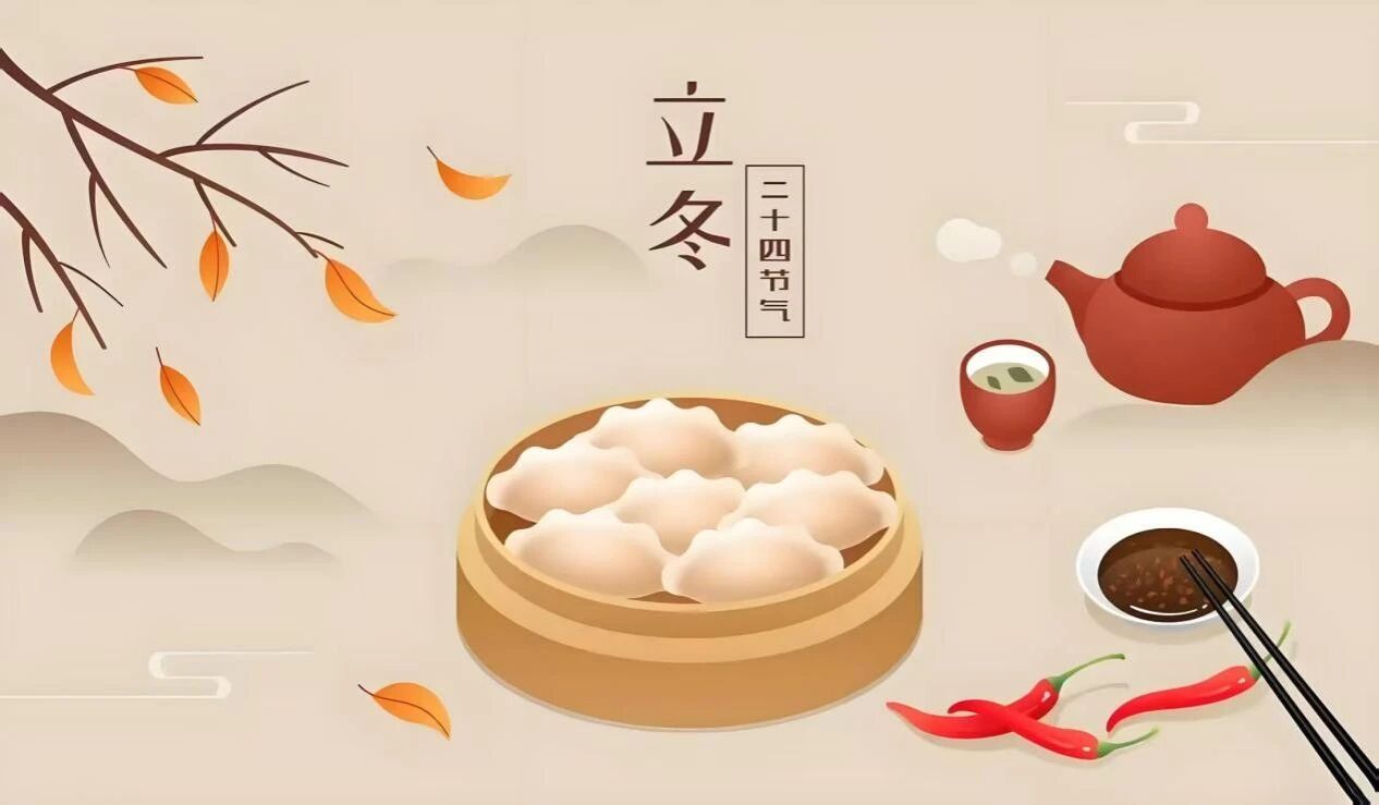 民间有着“立冬补冬,补嘴空”的说法,立冬这天要休息一下犒赏一家人一年来的辛苦,会吃羊肉、牛肉、饺子等温热的食物。北方尤其盛行吃饺子,人们认为在立冬这天吃饺子冬天耳朵就不会受冻。此外,饺子谐音“交子”,意指立冬是秋冬之交。南方地区,福州立冬要吃甘蔗,南京要吃生葱,老苏州人要吃咸肉菜饭。