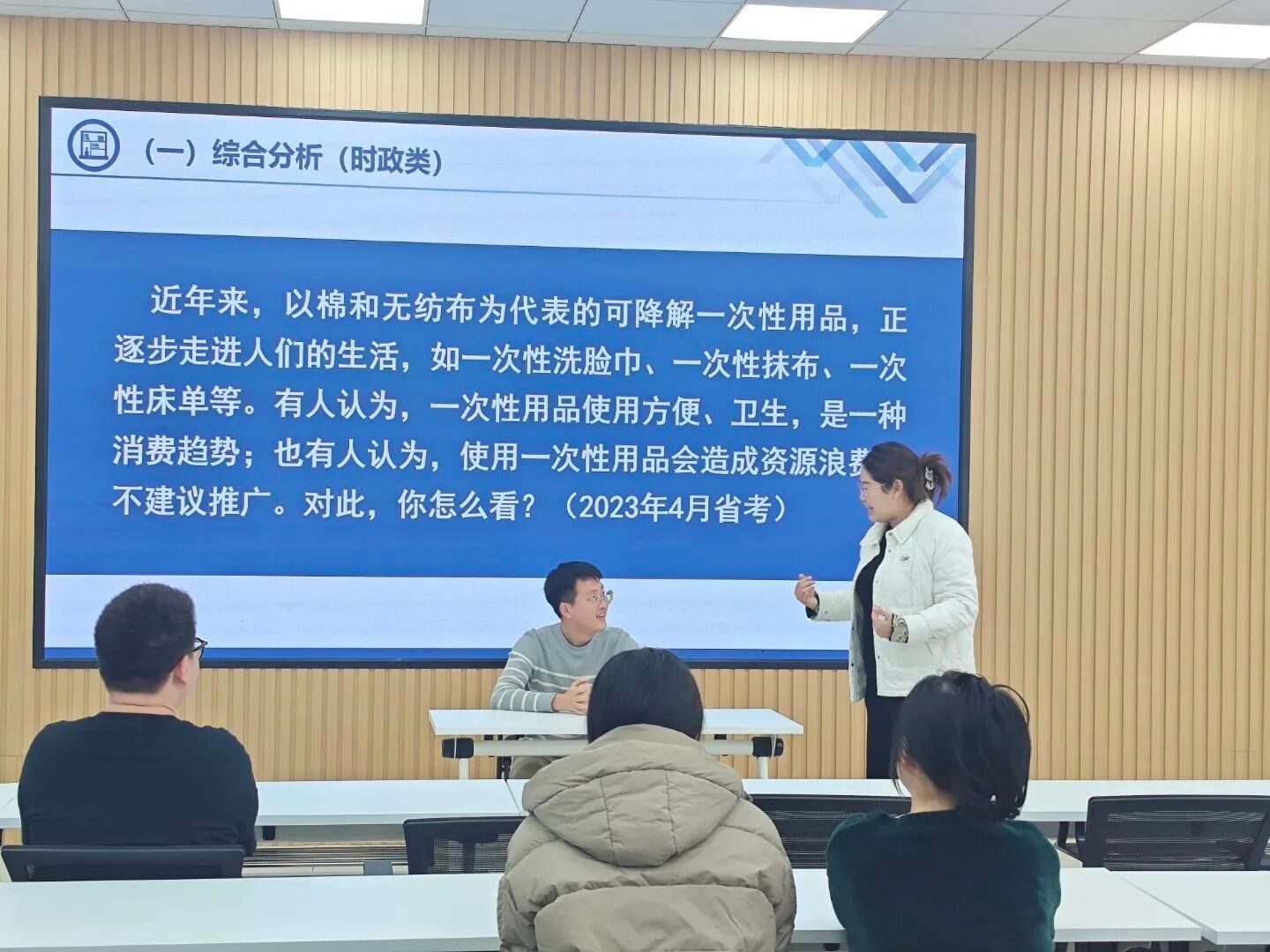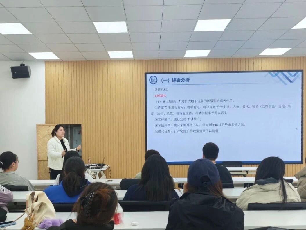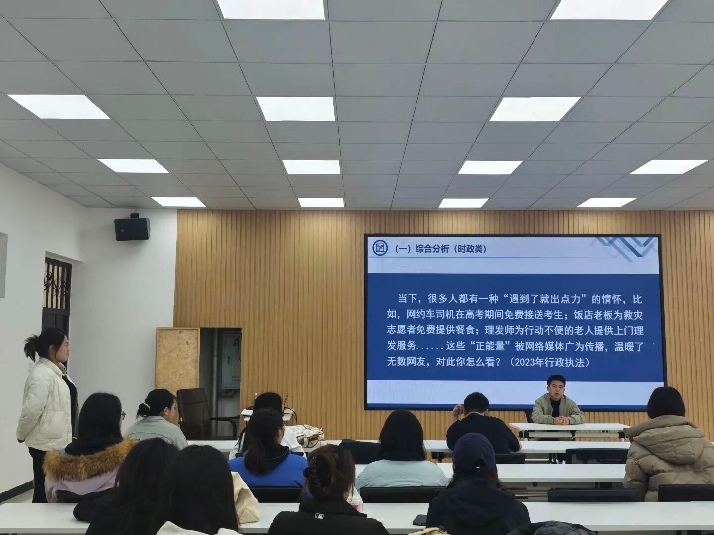 此外,活动设置真题实战与无领导小组讨论专项讲解环节,真题实战采用 “学生实战 + 老师点评” 模式,从审题精准度、逻辑严谨性等维度针对性指导,无领导小组讨论环节则围绕题目详细讲解讨论流程、观点表达、团队协作等核心要点,帮学子掌握此类题型的应对方法,兼顾个体答题能力与团队协作素养提升。
