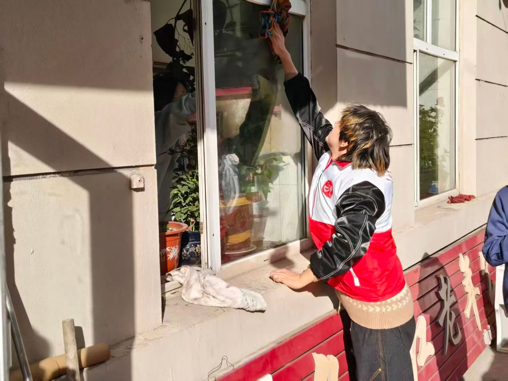在活动中,志愿者们为老人们表演节目,有唱歌,有跳舞,还有魔术,增加了他们的生活乐趣。随后,志愿者们打扫老人们的居住环境,让他们住的舒心。此外,志愿者们还与老人们聊天,教他们变魔术……