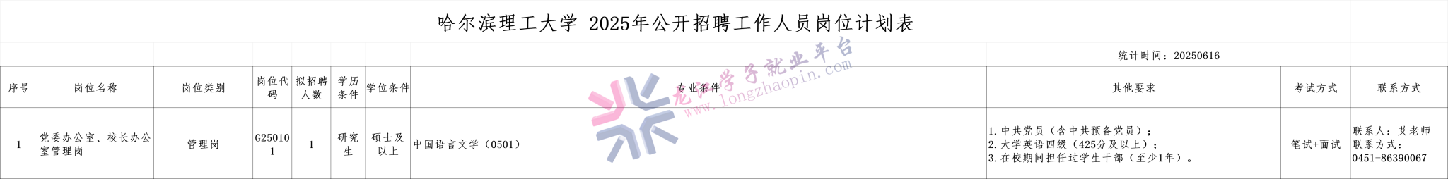 1:哈尔滨理工大学 2025年公开招聘工作人员岗位计划表.xlsx