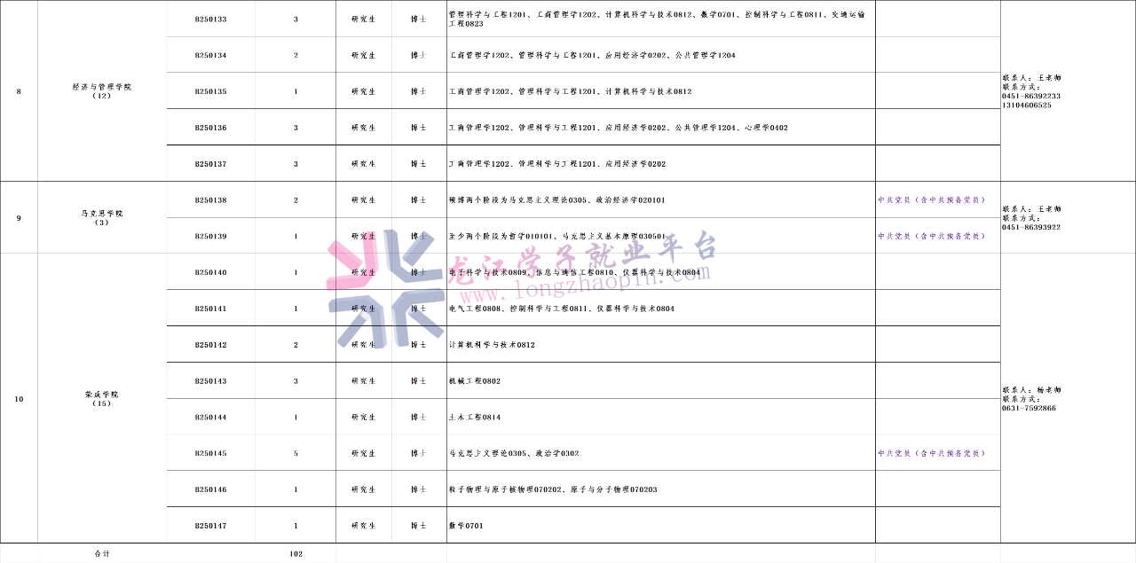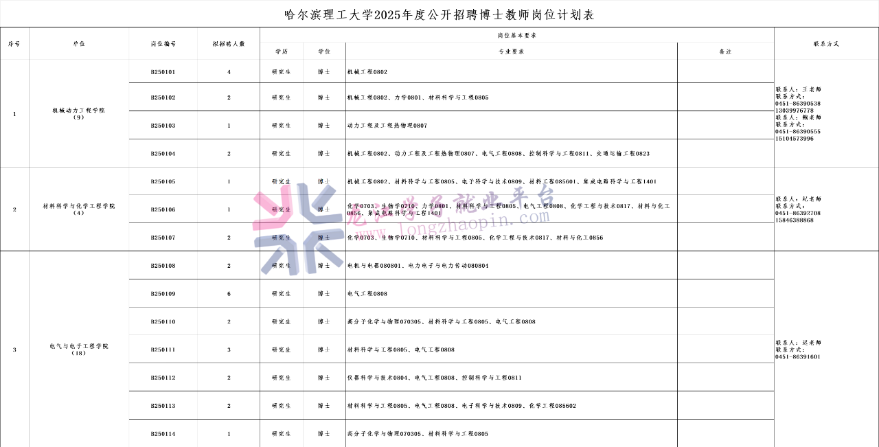 本次计划招聘博士教师102名,详见《哈尔滨理工大学2025年度公开招聘博士教师岗位计划表》(附件1,以下简称《招聘计划表》)。