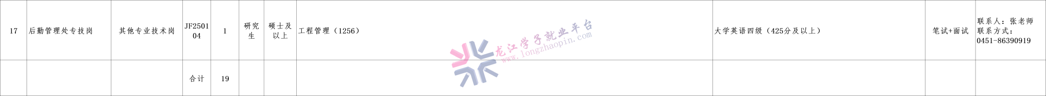 本次计划招聘工作人员19名。具体招聘岗位、人数、条件等详见《哈尔滨理工大学2025年公开招聘工作人员岗位计划表》(附件1,以下简称《计划表》)。