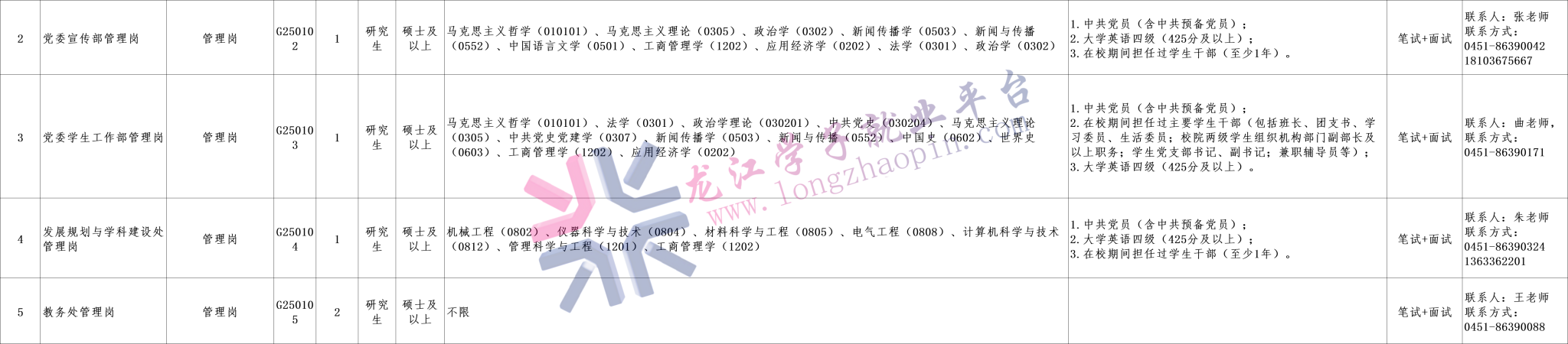 为充实工作力量、优化人才队伍,根据《黑龙江省事业单位公开招聘工作人员实施细则》《关于进一步做好省直事业单位公开招聘工作的通知》《关于全面下放省直事业单位公开招聘管理权限的通知》和《关于进一步做好事业单位公开招聘工作的通知》等规定,经学校研究决定,现面向社会公开招聘,有关事宜如下: