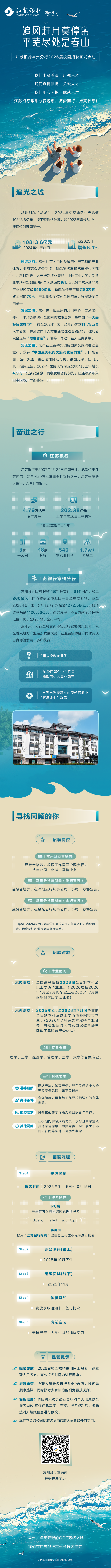 招聘信息|追风赶月莫停留 平芜尽处是春山——江苏银行常州分行2026届校园招聘正式启动